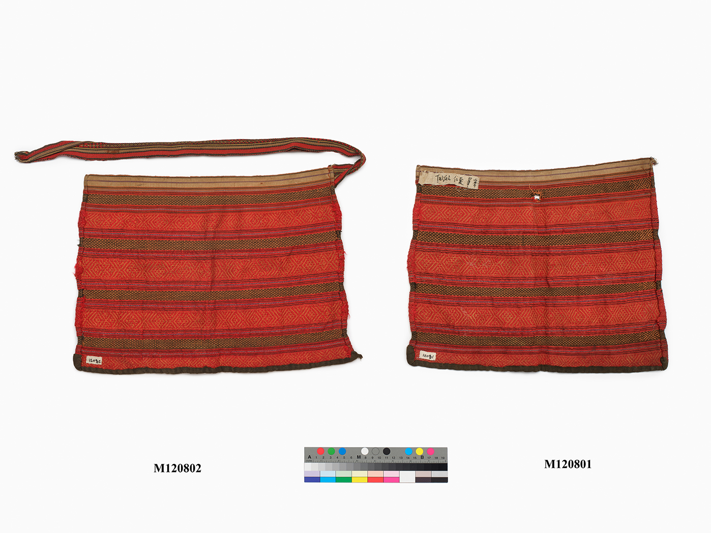 本件順益台灣原住民博物館藏「泰雅族護腳布」(館藏編號M120800),為泰雅族女子服飾配件,族語稱為sragi'。入藏記錄並未詳列來源地與社名。