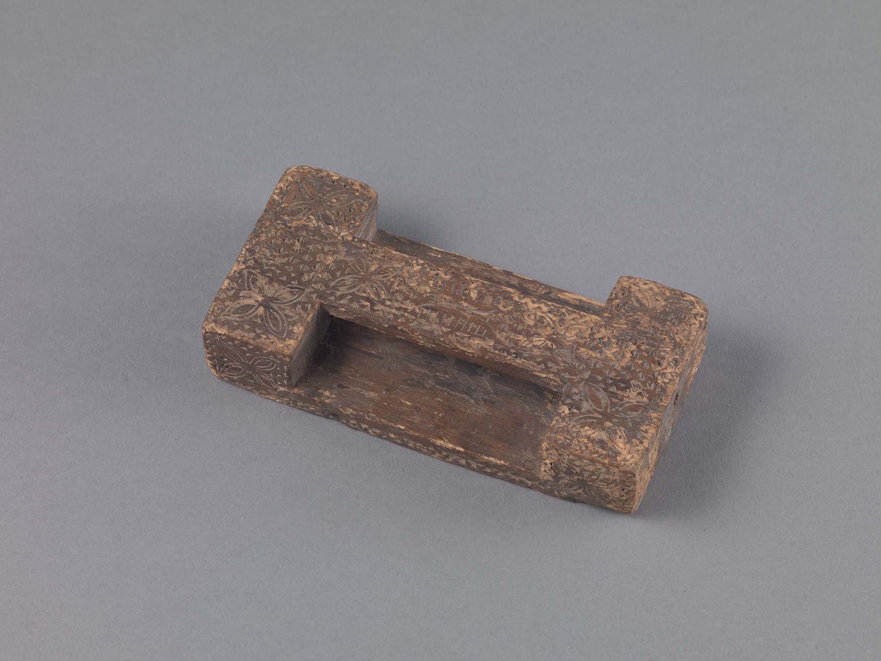 參考國立臺灣博物館、國立臺灣歷史博物館和國立臺灣史前文化博物館的典藏,漢人所使用的刀插之形制,從正面看多呈長方形(臺史博館藏編號2002.005.0119),也有從側面看呈「山」字形者(臺博藏品編號AH005379)。原住民所使用的刀插之形制則更為多元,除了上述兩種形制,還有H字形和圓形。本件的形制也可視為H字形的變體。