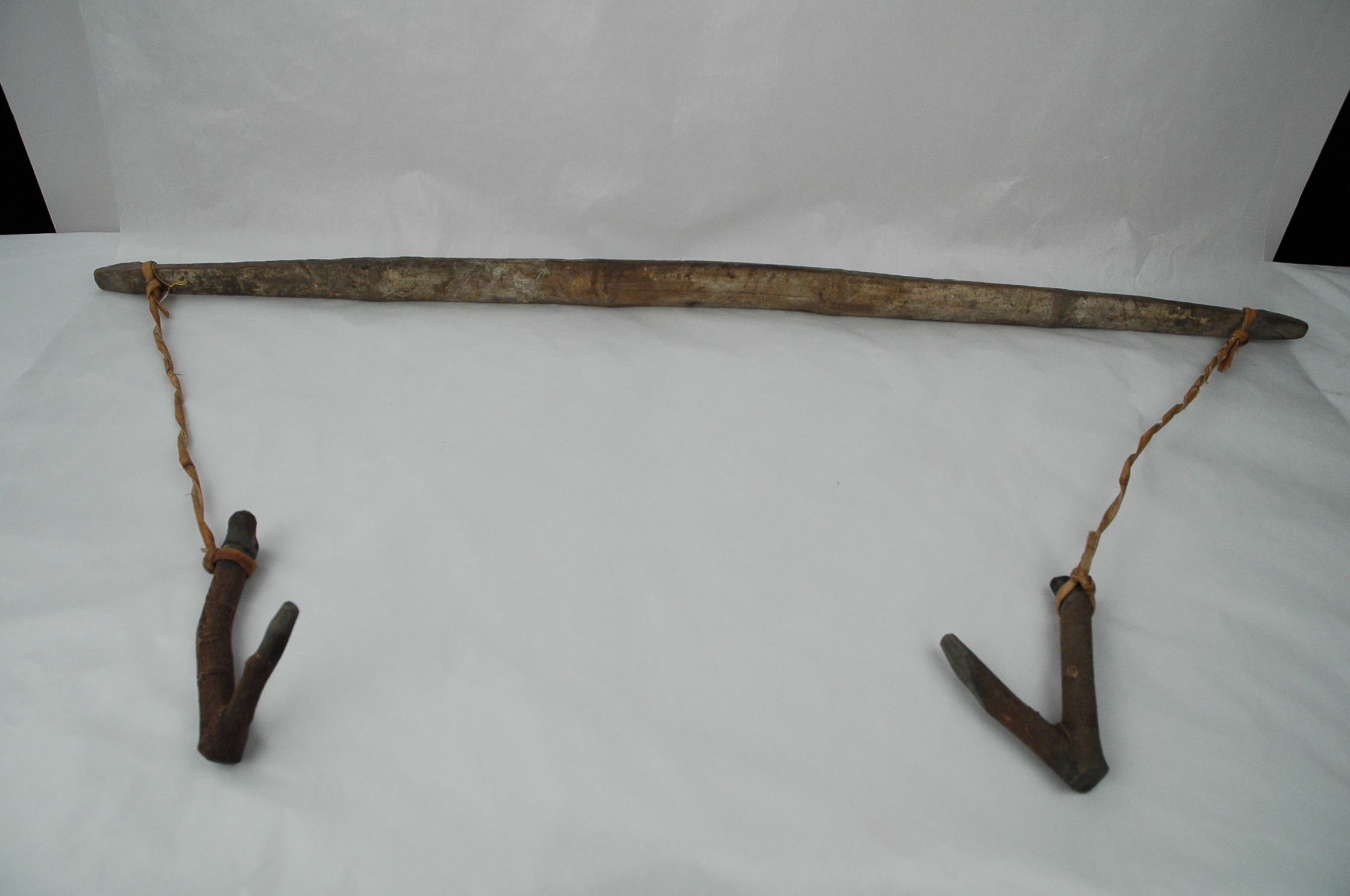 本件順益台灣原住民博物館藏「阿美族扁擔」(館藏編號M126601),採自於臺東縣成功鎮都歷部落,為阿美族挑秧苗的農業工具。