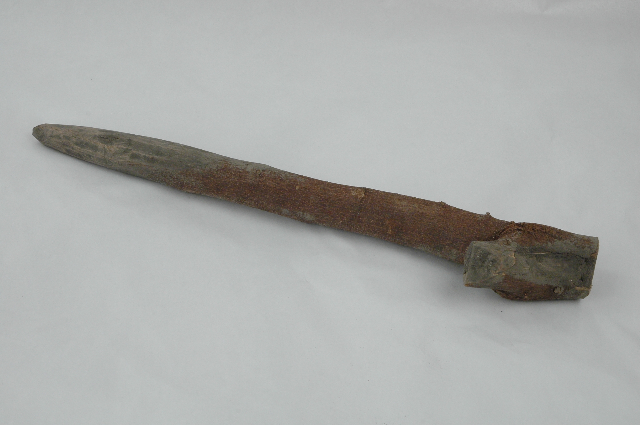 本件順益台灣原住民博物館藏「阿美族掘棒」(館藏編號M126700),於2003年11月7日購自葉林青愛女士(臺東縣成功鎮都壢部落),為阿美族使用的農作工具。