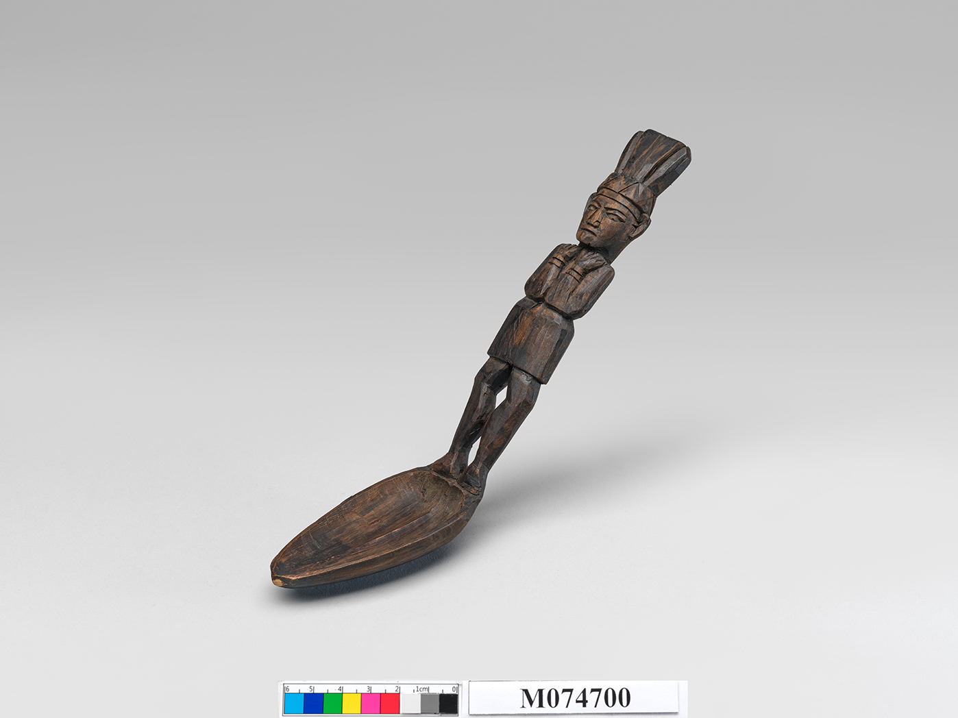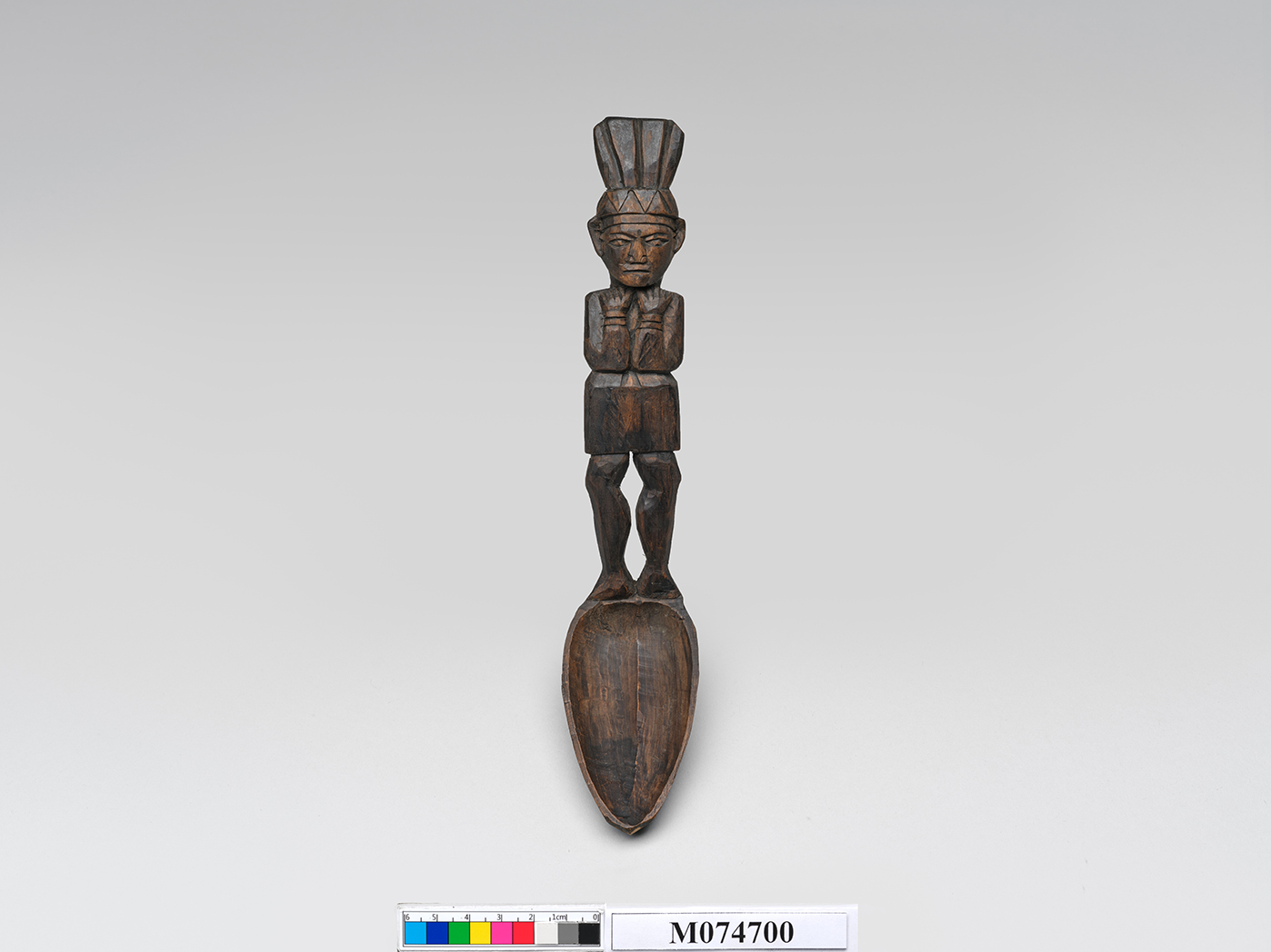 本件順益台灣原住民博物館藏「排灣族匙」(館藏編號M074700),為近代雕刻工藝品。