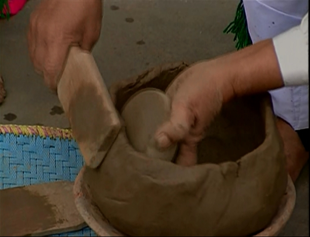 影片中紀錄了豐濱阿美族傳統製陶過程,製陶程序概分為祭告祖靈、採土、製胚、墊拍及刮修、修飾、晾乾、燒陶等步驟;影片中,族人所使用的製陶工具,多數可以在本館二樓的陶器展區看到。