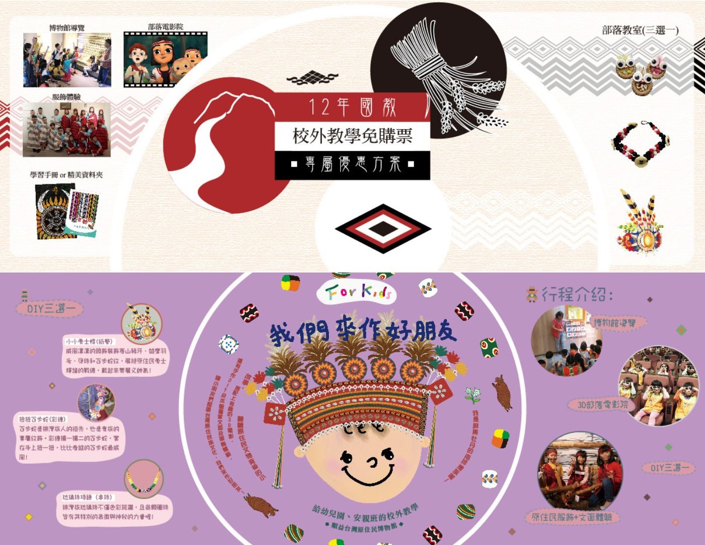 - 大冒險行程:每位學童200元(內容:導覽+3D部落電影院+DIY+原民服飾體驗&文面體驗)
